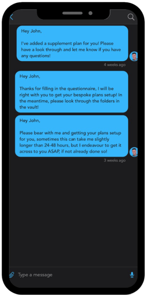 Online coaching gives you personalised fitness and nutrition guidance no matter where you are. You'll receive custom workout and nutrition plans, regular check-ins, and 24/7 support tailored to your unique goals—all delivered through an easy-to-use platform.